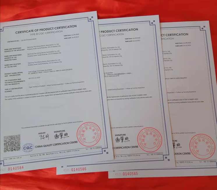 近日,我司生產(chǎn)的交流低壓配電柜、動力配電箱、低壓抽出式開關柜等低壓成套開關設備獲得國家專家組的質(zhì)量認定,上述產(chǎn)品符合CQC12-000001-2020認證規(guī)則的要求,并給我司頒發(fā)了產(chǎn)品認證證書。