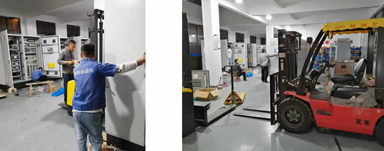 第二生產(chǎn)車間整齊排列的等待安裝的柜體