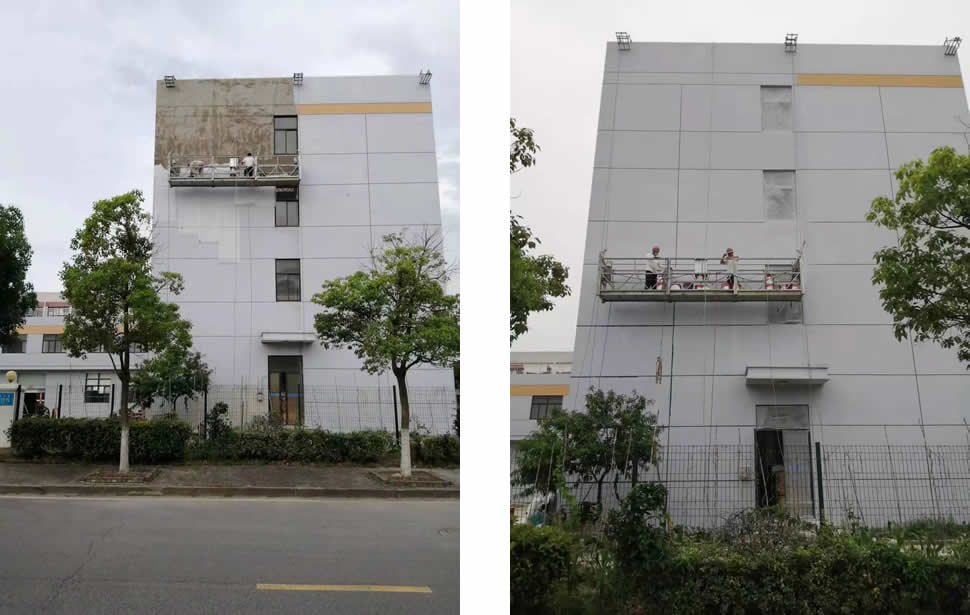 為了進(jìn)一步提升公司對(duì)外形象,優(yōu)化廠容廠貌,經(jīng)公司董事會(huì)研究,自今年六月上旬起,我司決定將廠區(qū)所有外墻面進(jìn)行整體防水升級(jí)改造。鏟除并清理原有外墻基面,重新上網(wǎng)格布上砂漿,批膩?zhàn)?,上涂?/span>,噴真石漆,施工至今已有數(shù)周。